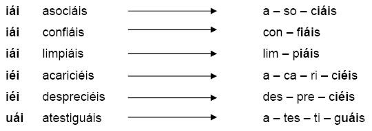 Al separar en sílabas no se separan ejemplo: es-piáis