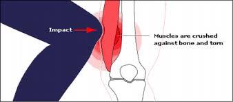 Traumatismo que provoca un aplastamiento del músculo contra el hueso. tratamiento igual que en las roturas