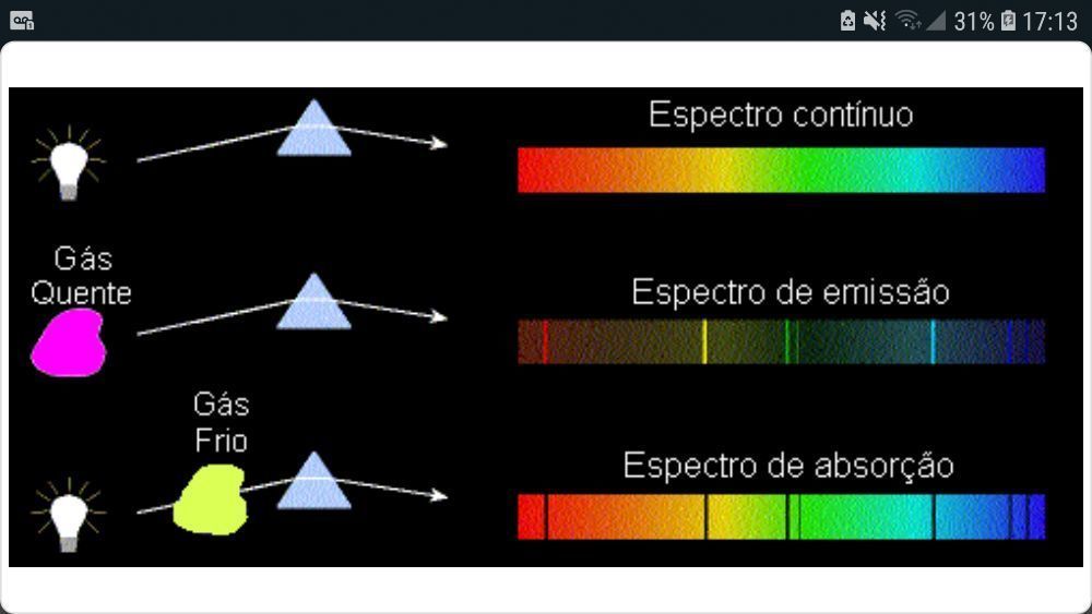 Espectro de absorção é quando a luz oriunda de um núcleo altamente denso e aquecido produz um espectro contínuo