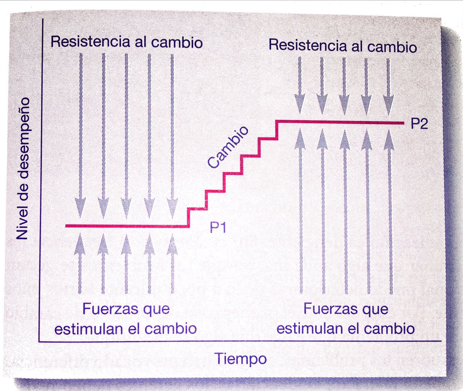 1. Cuando las fuerzas se equilibran, la organización se encuentra en un estado de inercia y no cambia. Sus gerentes deben aumentar las fuerzas a favor del cambio y reducir las fuerzas resistentes a el