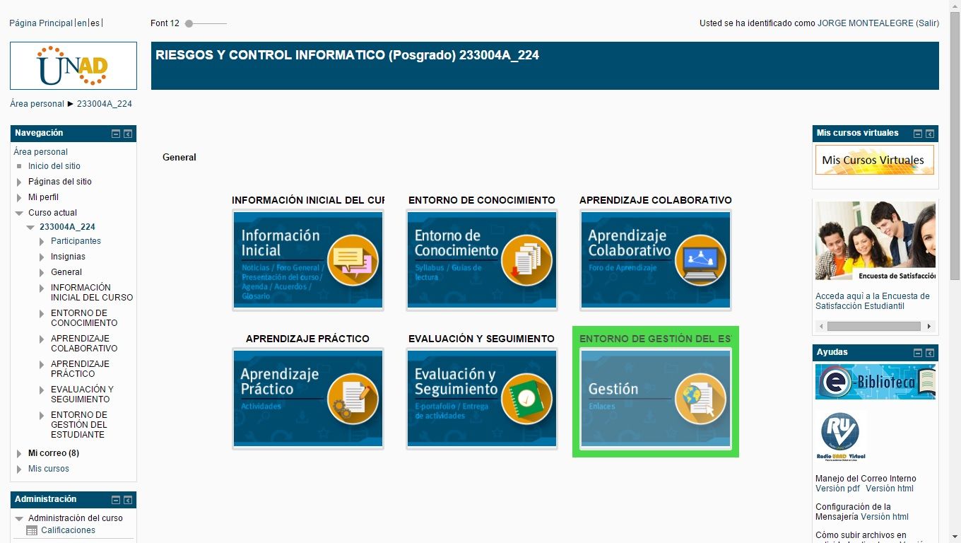 El entorno de conocimiento ofrece la información relacionada con los contenidos del curso