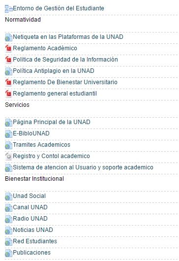 En este entorno los estudiantes encontrarán los vínculos de los enlaces a páginas claves de la universidad.
