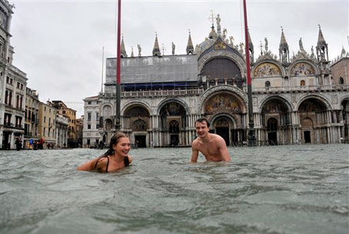 EL PALACIO DUCAL Y LOS BANCOS DE LA PLAZA DE SAN MARCOS SE INUNDAN