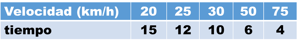 Si un tren recorre 300 km, la velocidad que lleve y el tiempo empleado en recorrer esa distancia son cantidades inversamente proporcionales porque a mayor velocidad tardará menor tiempo; y a menor velocidad tardará mayor tiempo. Observa la siguiente tabla: