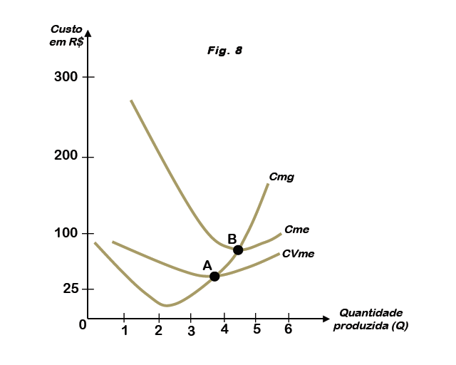 O ponto ótimo é no ponto O, onde o CMeLP é mínimo
