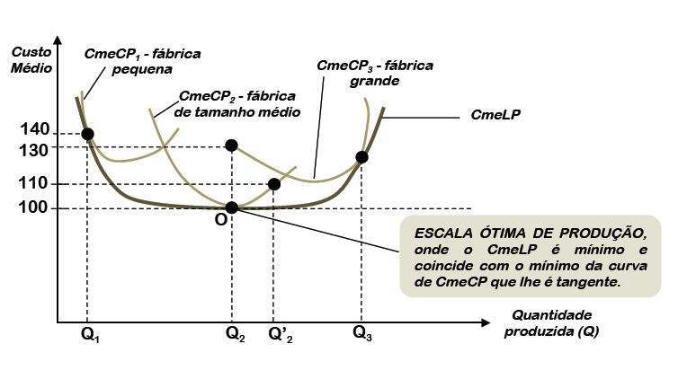 Obs.: A curva de CmeLP corresponde à envolvente inferior das curvas de custo médio de curto prazo