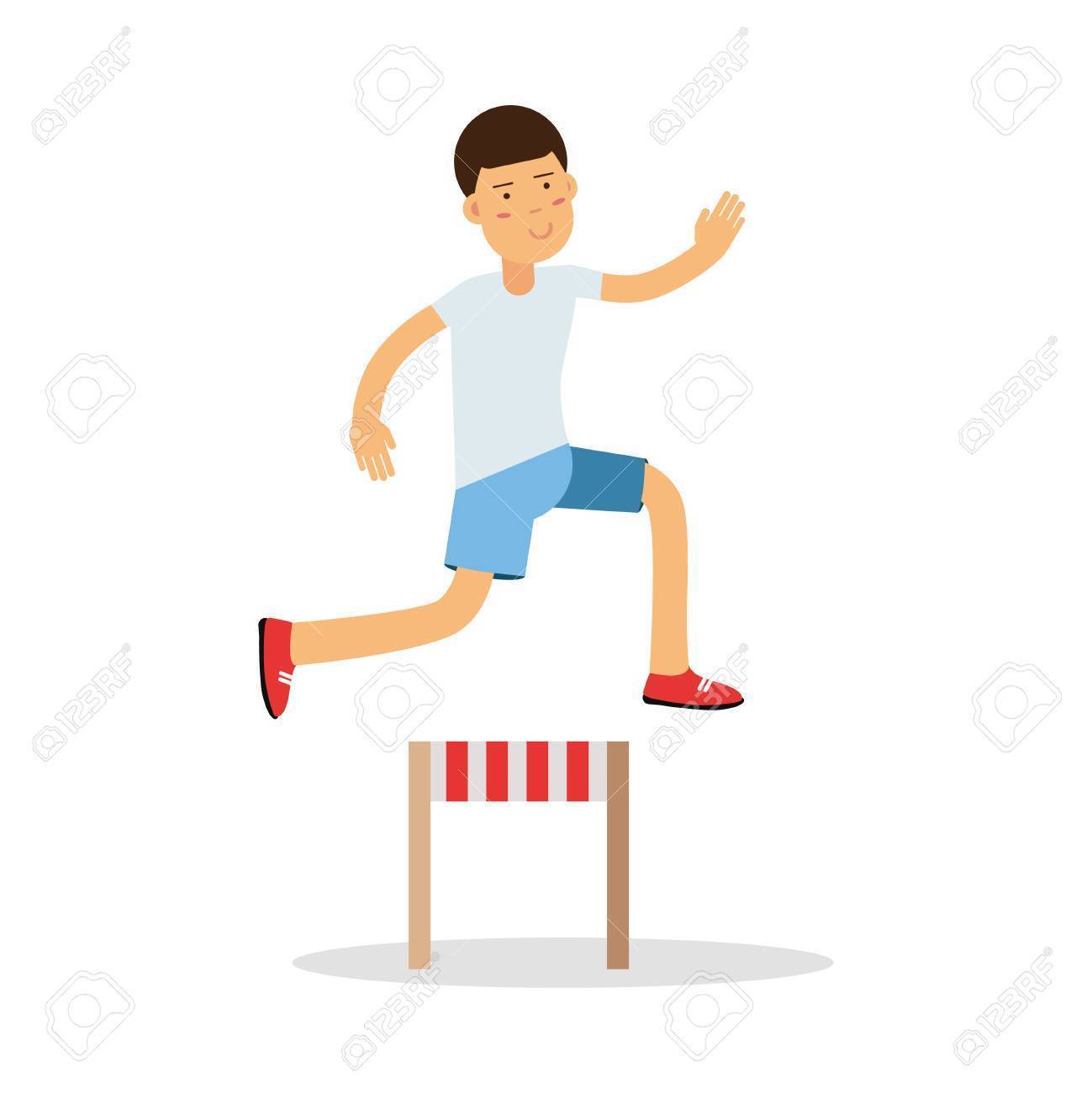 80763414 Chico Activo Saltando De Personaje De Dibujos Animados De Obstáculo Niños Actividades Físicas Vectoriales (image/jpeg)