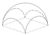 resultante de la intersección ortogonal de dos bóvedas de cañón de la misma altura.