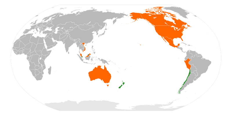 • Australia, Brunei, Darussalam,  Canadá, Chile, E:U; Japón, Malasia, México, Nueva Zelandia, Perú, Singapur y Vietnam.