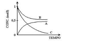 Durante uma reação química, a concentração dos reagentes (B) vai diminuindo, enquanto a concentração dos produtos vai aumentando (A).