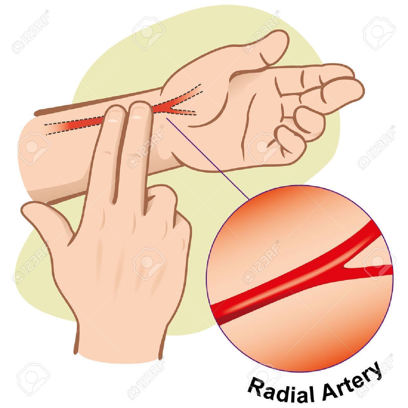 41743197 Ilustración Primeros Auxilios Persona Que Mide El Pulso De La Arteria Radial Ideal Para Catálogos Informa (image/jpeg)
