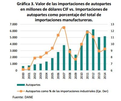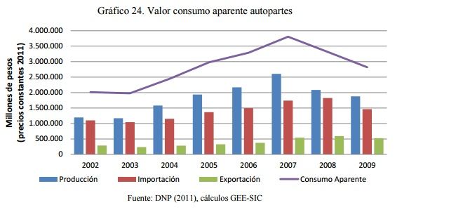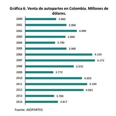 Colombia tiene un parque automotor de alrededor de 3,5 millones de unidades de vehículos, de los cuales el 57% son importados. Se prevé que en el 2020 el total del número de vehículos en las vías nacionales se duplique
