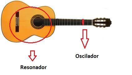 Si la cuerda tensa se jala hacia abajo, vibrará oscilatoriamente de de abajo hacia arriba hasta volver a su lugar inicial (la línea horizontal representa la cuerda de la guitarra),