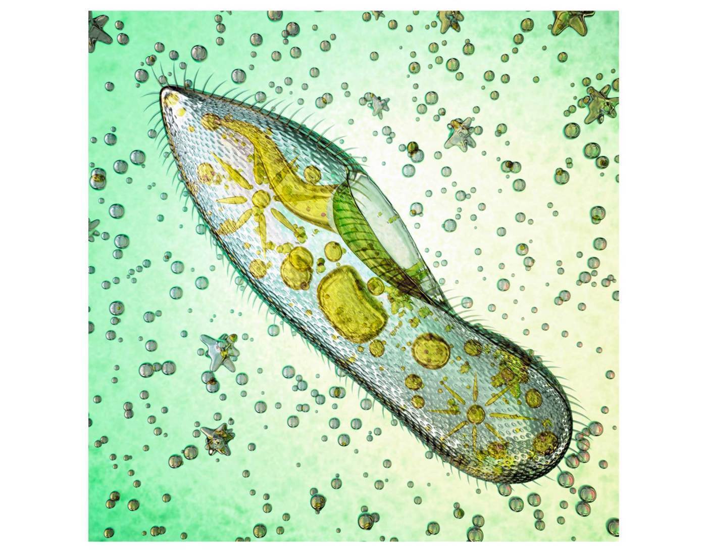 paramécios), algas (unicelulares e pluricelulares) e mixomicetos.