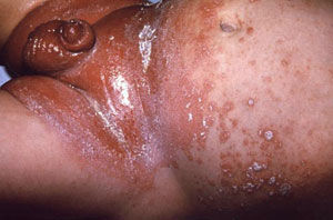 Pápulas o pústulas localizadas al glande con discreto eritema y dolor