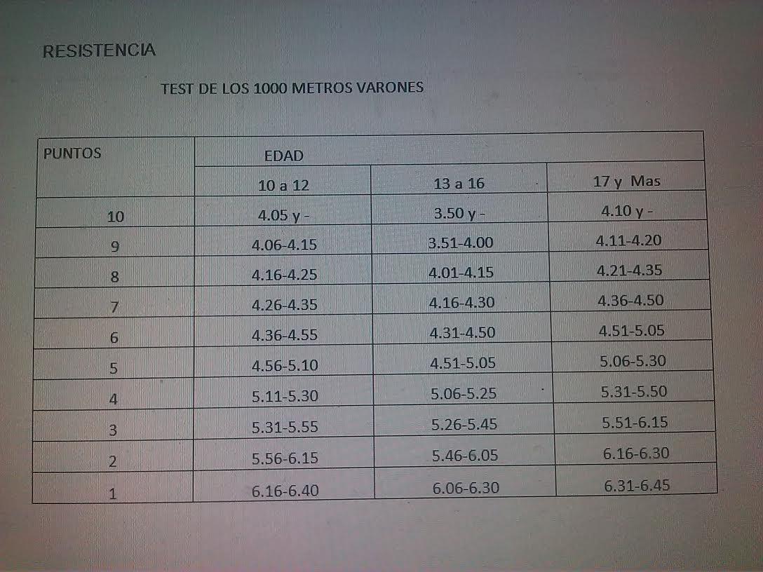 CAPACIDAD FISICA Y PSIQUICA DE SOPORTAR LA FATIGA FRENTE AL ESFUERZO. TEST DE 1000