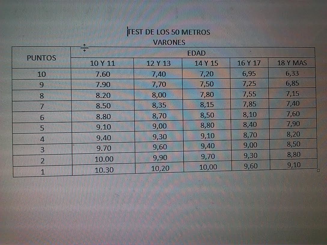 VELOCIDAD DE DESPLAZAMIENTO. TEST 50 METROS. RECORRER 50 METROS EN EL MENOS TIEMPO POSIBLE