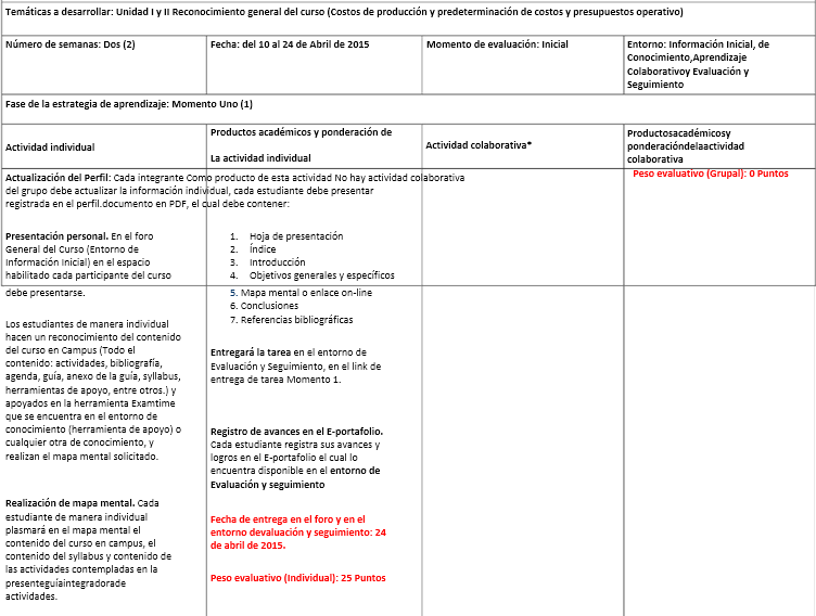 el desarrollo de las actividades del curso. se encuentra el espacio