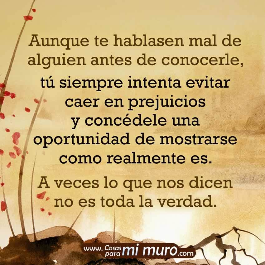 Cuando alguien nos habla mal de una persona sin conocerla, le hacemos caso. Es decir: