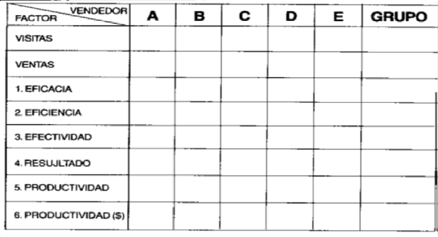 vendedor (E) con los valores meta para cada uno. a continuación se