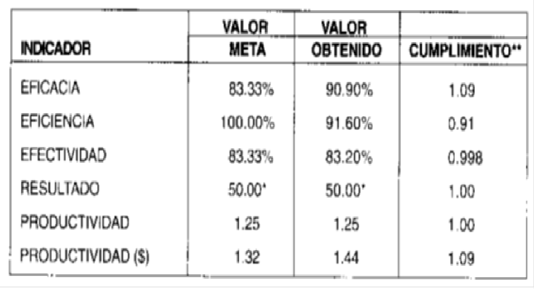 resultado. En cuanto a los indicadores de eficiencia y productividad fue más