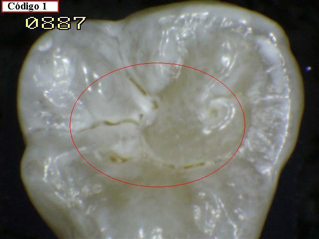 sombra oscura de dentina , vista atraves del esmalte húmedo, con o sin pérdida superficial del esmalte