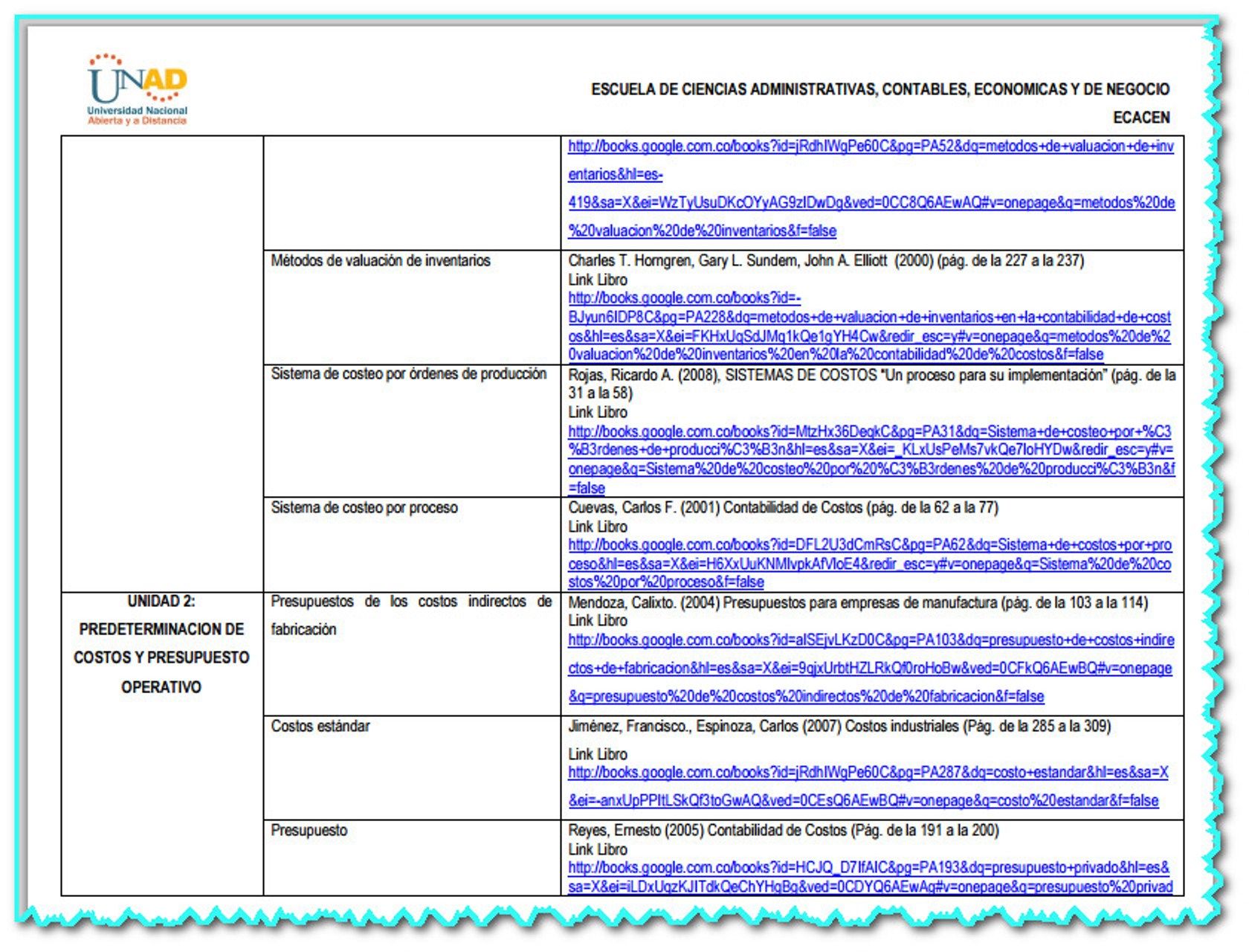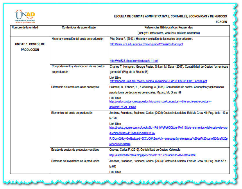 de costos y