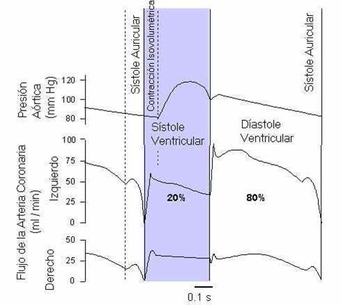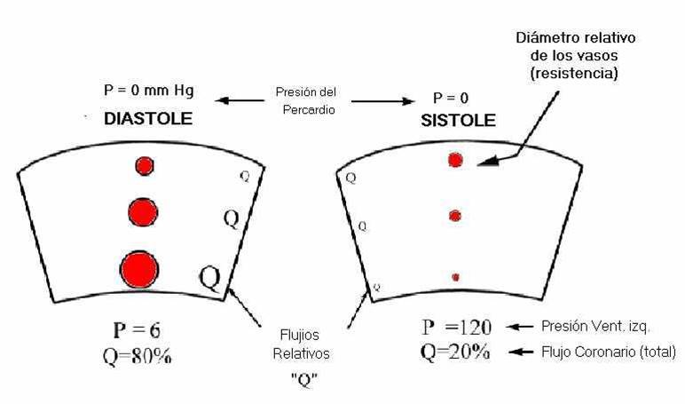 Presión arterial al inicio y durante la diástole: 80% del flujo coronario izquierdo ocurre