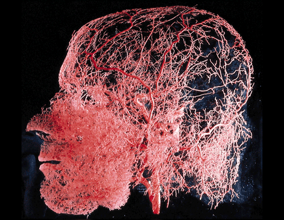 Circulación sanguínea: Se extiende desde la arteria carótida y las arterias vertebrales