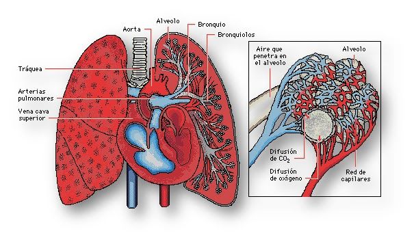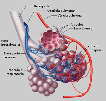 CO2 alveolar y disminución del pH sanguíneo pulmonar, que desemboca en un efecto