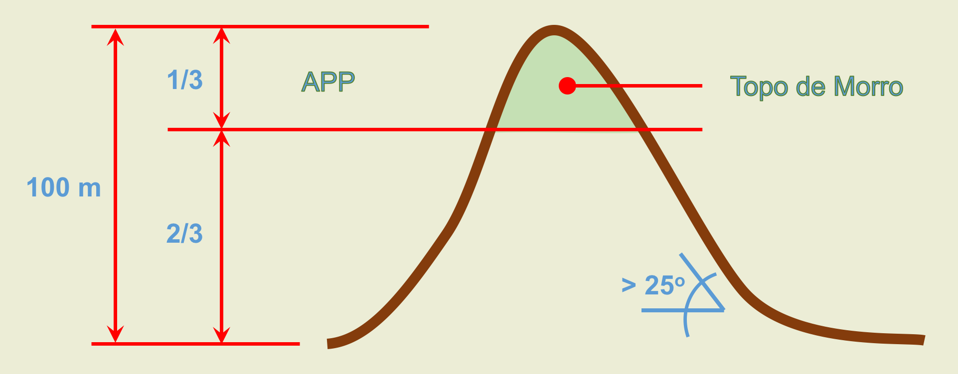 como rios, nascentes, topos de morro e áreas muito íngremes