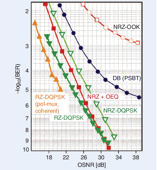 Gb indica de igual manera con una relacion BER a SNR optico que la