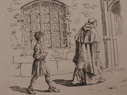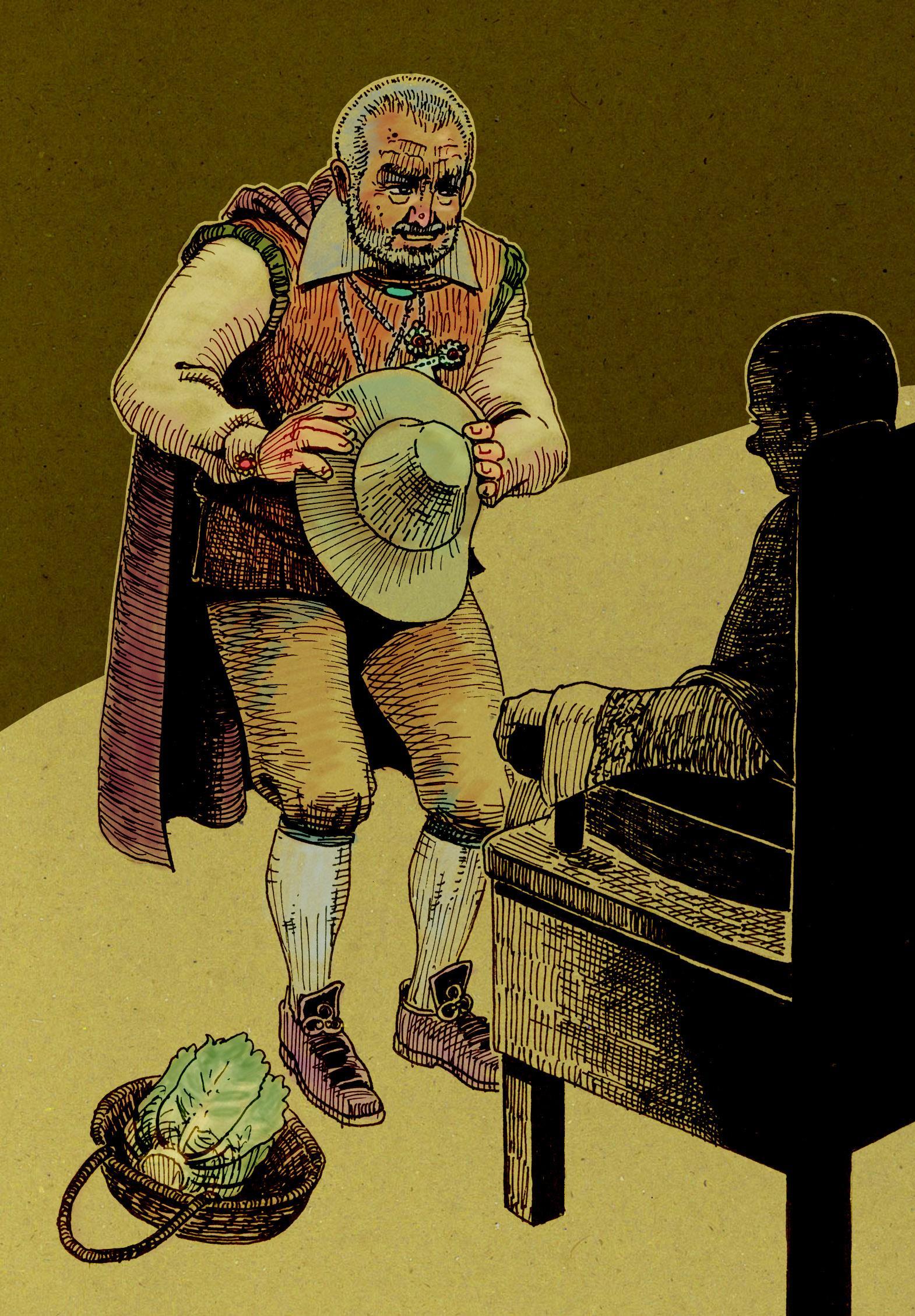 Le da trabajo y finalmente al conseguir dinero se marcha sin dejarle penas al capellán.