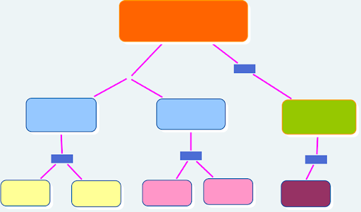 Sigue el mismo principio del diagrama de llaves, pero los conceptos están jerarquizados con flechas.