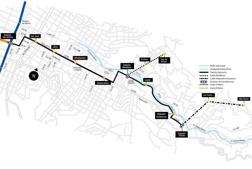 tranviaria de 4.3 Km, desde la estación San Antonio del Metro hasta el barrio