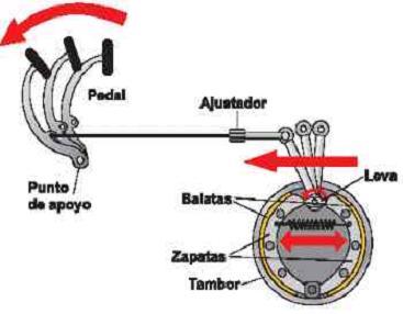 cables u otros mecanismos a los diversos puntos del frenado. Se utiliza únicamente para pequeñas