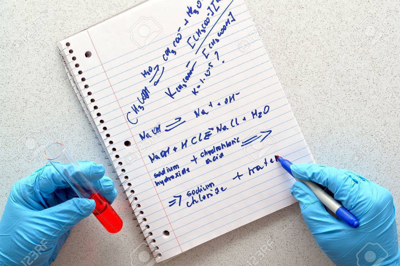10461937 Por Científico Sosteniendo Un Tubo De Ensayo Con Líquido Rojo Y Escribir Fórmulas De Química En Un Cuaderno D (image/jpeg)