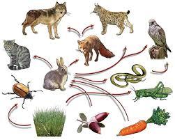 Por ejemplo, una cadena alimenticia típica en un ecosistema de campo pudiera ser: pasto --->