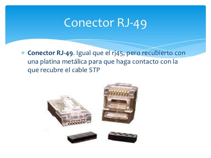 Los conectores están de la mano con el cable de par trenzado, dependiendo del conector es de 1 a 8 pines, y el