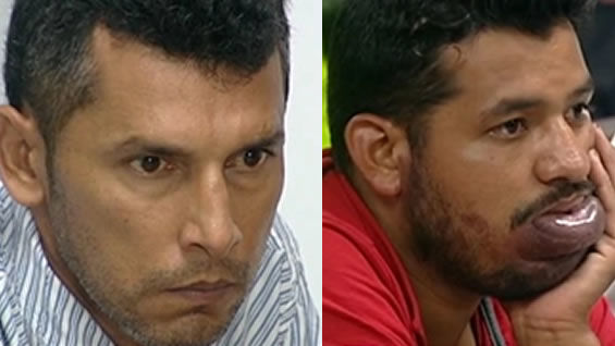 Dos personas de sexo masculino de aproximadamente 25 años de edad, uno de ellos es bajo, moreno, corte de cabello corto, nariz grande.