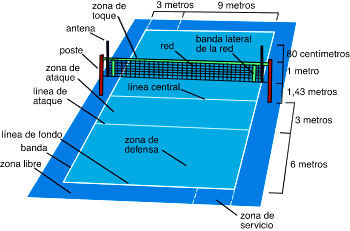 Pasar el balón por encima de una red e intentar que toque el suelo del campo contrario