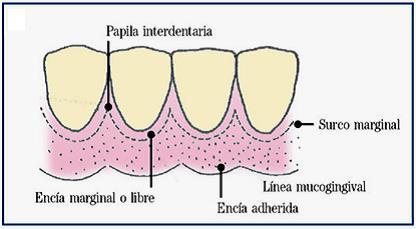 La zona de la encía libre que se extiende entre diente y diente se denomina papila o encía interdental