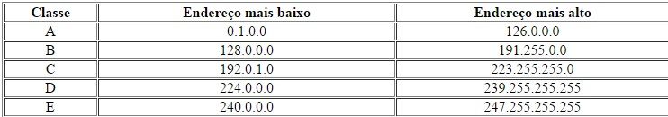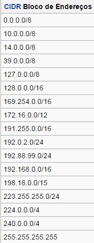 das classes A, B e C foram reservadas redes (normalizados pela RFC 1918 e