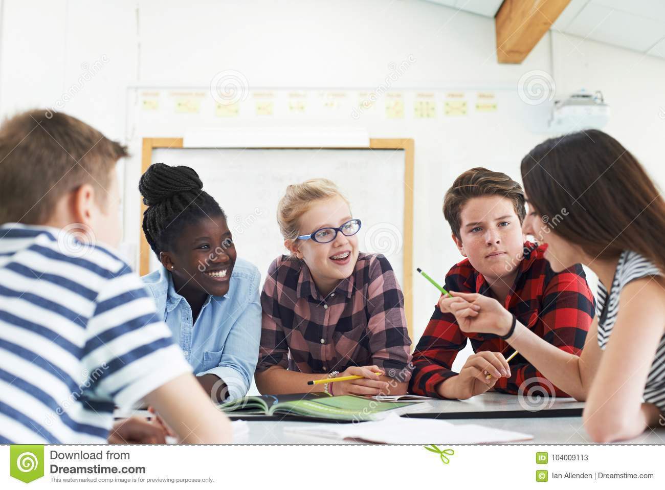 Grupo De Estudiantes Adolescentes Que Colaboran En Proyecto Sala Clase 104009113 (image/jpeg)