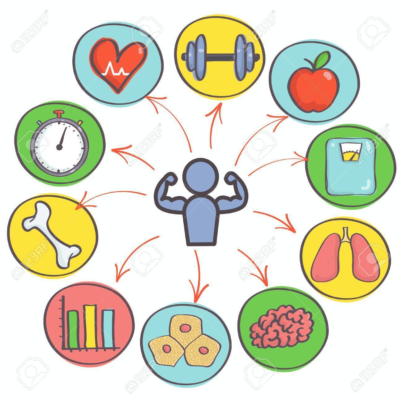 82579075 Ilustración De Dibujos Animados De Vector De Concepto De Deporte Y Salud Con Iconos (image/jpeg)