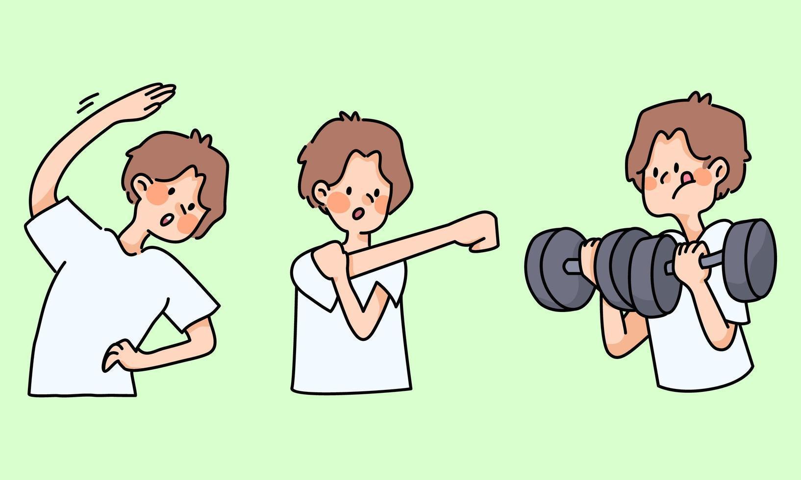Cute Boy Exercise Healthy Work Out Stretching Cute Cartoon Activities Vector (image/jpeg)