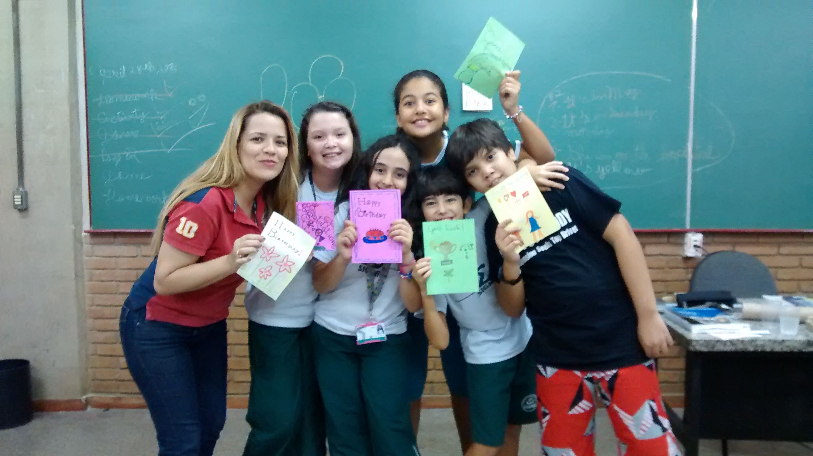 Engaged students and teacher creating their own cards -