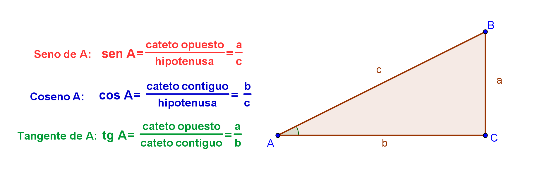 SEN A = LADO OPUESTO/ HIPOTENUSA