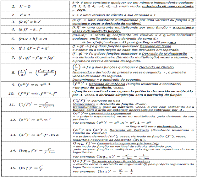 Derivadas essenciais: Regra nº 1: (k' = 0) - Derivada de uma constante: Segundo a regra