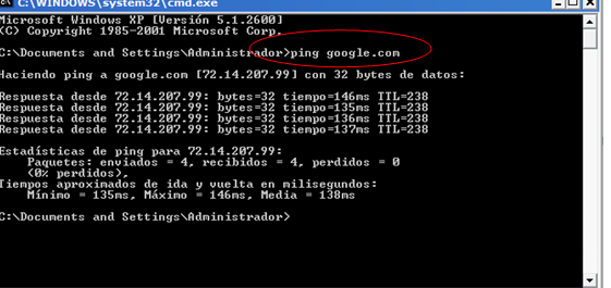 dirección IP del servidor de google. Con